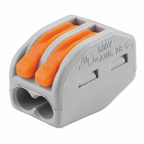 серыйКлеммы подходят для подключения любых типов медных проводников: моножильных и многожильных тонкопроволочных. В клеммах применена контактная группа типа Cage Clamp. Зажим проводов в клемме осуществляется при помощи оранжевых рычагов. Специальный паз в корпусе клеммы для размещения рычага в закрытом положении предотвращает случайное отсоединение проводника. Измерить электрические параметры цепи можно без разбора и нарушения изоляции соединения. Клеммы обеспечивают безопасность и порядок в распределительной коробке.