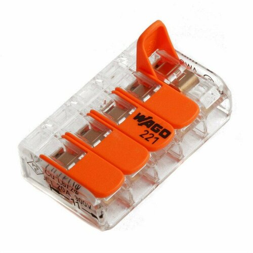 221-415 5 конт, многоразовая, 32A 450V - клеммная колодка WAGO (25), цена за 1 шт.