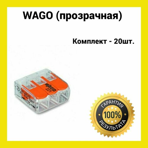 Клемма WAGO 2273-203 40 шт, без пасты соединительная 3-х проводная, набор клеммников ваго для проводов универсальных трехконтактных прозрачных, Германия