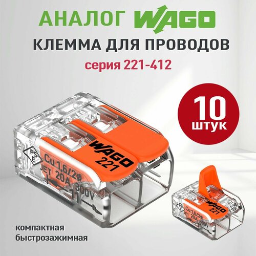 Соединительные клеммы Wago (Аналог Wago) для проводов, ваги 221-412, 10шт