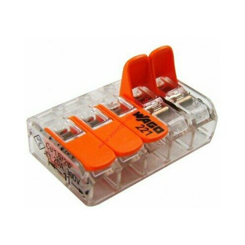 Цены на Клемма WAGO с рычагами 3-проводная 221-613 / 6 мм2 / 50 шт. бесцветный, оранжевый в г. Пермь