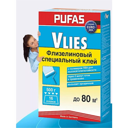 Клей для обоев специальный флизелиновый, Pufas Euro 3000 Vlies Kleber, 500 г, для обоев на флизелиновой и бумажной основе. Производство Германия Пуфас