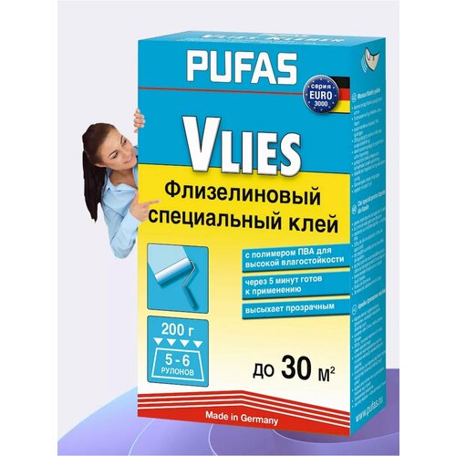 Клей для обоев специальный флизелиновый, Pufas Euro 3000 Vlies Kleber,200 г, для обоев на флизелиновой и бумажной основе. Производство Германия Пуфас