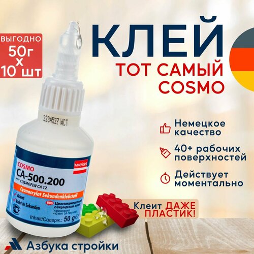 Клей строительный цианакрилатный универсальный секундный Космофен, COSMO CA 12 CA-500.200, супер-клей Cosmofen, 50 гр*10 шт