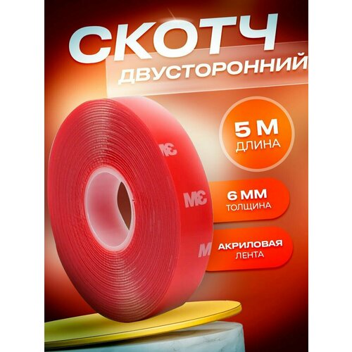 Двухсторонний скотч 3М из акрилового пеноматериала с клеевым слоем с двух сторон, подходит для любых целей в быту, а так же к кузов...