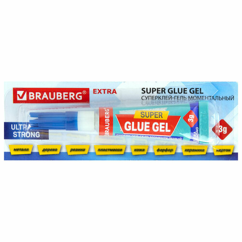 Клей-Гель моментальный (1шт) ультрапрочный суперклей BRAUBERG EXTRA 3г, отрывная карта, 603103, HR-12 В комплекте: 24шт.