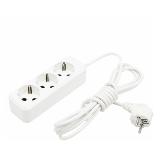 Удлинитель электрический с плоской вилкой 1 розетка, 1 метр. (Белый)