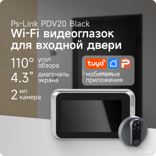 Видеодомофон WIFI Ps-Link PS-T30 ночная съемка, угол обзора 166°, Full HD, Чёрный
