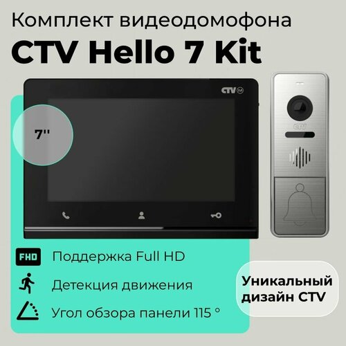 CTV KIT Hello 7 (Черный- Серебро) Видеодомофон для квартиры, дисплей 7" 1024x600, с записью видео по детекции движения, камера Full HD, угол обзора 115 градусов