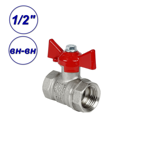 VALFEX Кран шаровой для воды 1/2" ВР/ВР бабочка, латунный никелир-й 11Б27фт1М VF.217. NB1.012. Bir