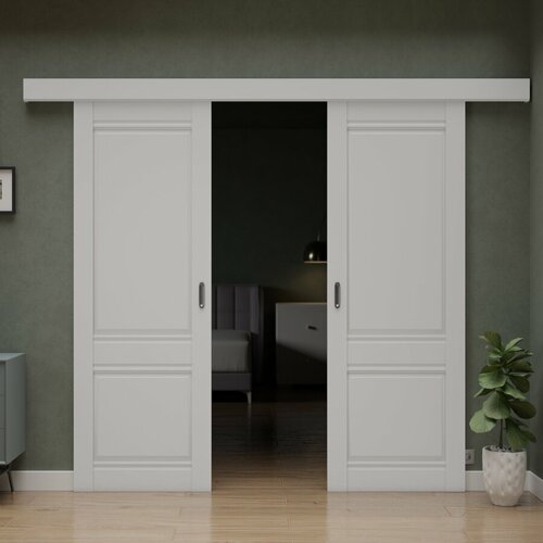 Дверь межкомнатная раздвижная купе (2 полотна) с комплектом для установки Сицилия цвет: софт гладкий размер полотен: 600х2000 мм ( комплект: полотно 2 шт + раздвижной механизм + добор)