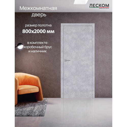 Дверь межкомнатная Леском Т1, 800х2000 глухая, МДФ, бетон, комплект с коробкой и наличником