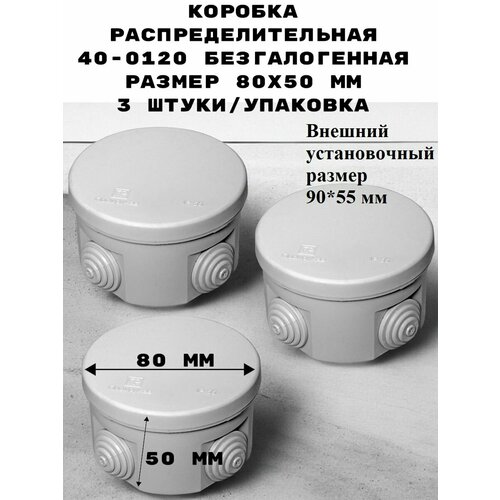 Коробка распределительная Промрукав для открытой установки 4 ввода D 20 мм, безгалогенная (HF) 80х50 мм (3 шт/уп.) IP55