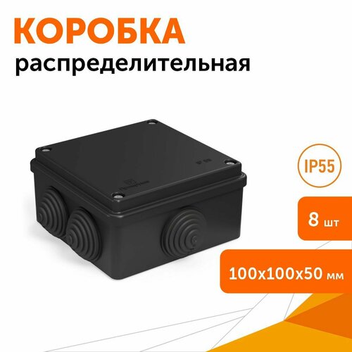 Коробка распределительная 100*100*40 для прямого монтажа двухкомпонентная черная IP 66 Промрукав (комплект 8 шт)