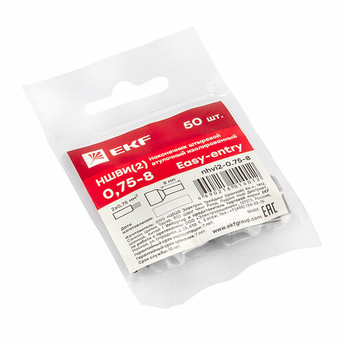 Наконечник штыревой втулочный изолированный EKF НШвИ(2) 0,75-8 мм двойной 50 шт