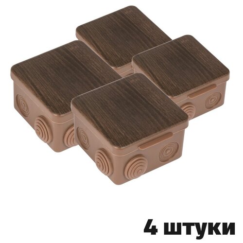 Коробка распределительная КМР-030-031 с крышкой (80х80х50) 7 мембранных вводов тёмное дерево IP54 EKF - 4штуки