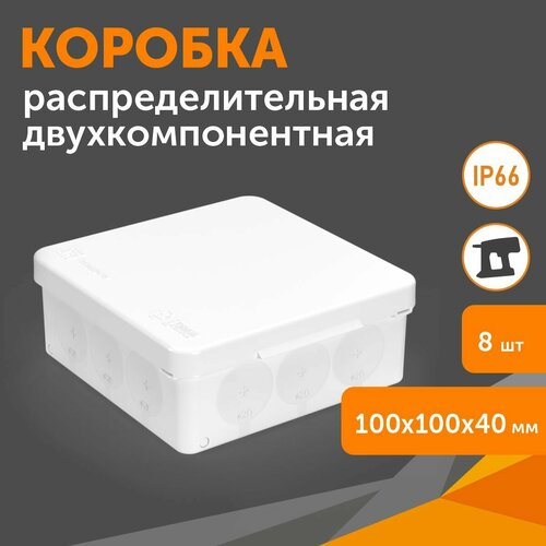 Коробка распределительная 60-0303-9003м для прямого монтажа двухкомпонентная безгалогенная (HF) белая 100х100х40, 8шт