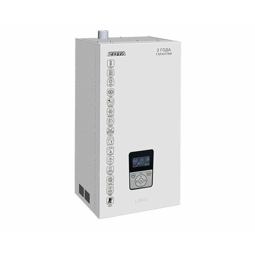 Электрокотел Zota Solid-X - это усовершенствованный вариант электрического котла Zota Lux-X. Отличительной особенностью в конструкции Solid-X является использование твердотельного реле c огромным ресурсом работы.по количеству циклов коммутации, что приравнивает срок службы используемого типа реле к сроку службы самого котла.особенности устройства:• Информативный графический дисплей• Система самодиагностики неисправностей• Защищенные твердотельные реле на мощном алюминиевом радиаторе• Надежные ТЭНы специальной конструкции из нержавеющей стали• Управление по температуре теплоносителя и температуре воздуха• Погодозависимое регулирование• Управление циркуляционным насосам• Управление приводом трехходового переключающего клапана ZOTA BPV, Fugas для организации работы контура ГВС• Возможность самостоятельного обновления программного обеспечения• Возможность подключения внешнего комнатного термостата• Возможность подключения GSM/GPRS/Wi-Fi/LAN модуля для удаленного управления котлом• 3 года гарантии.