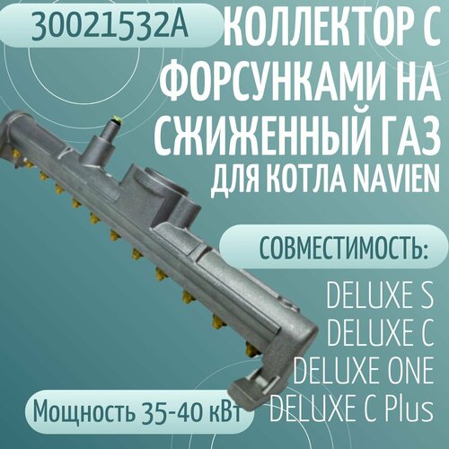 Коллектор с форсунками на сжиженный газ для котла NAVIEN DELUXE S/C/ONE/C Plus 30-40K (30021532А)