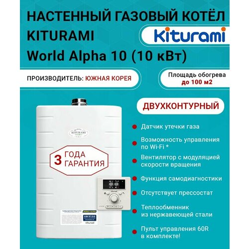 Котел газовый Kiturami World Alpha 10 A21E220277 (Китурами) настенный конвекционный двухконтурный