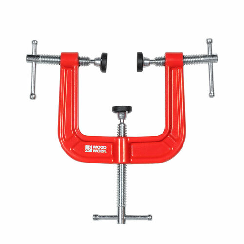 Кованая струбцина WOODWORK F-тип, 450x80 мм, c винтовой рукояткой HFC-4580 используется для сжатия нескольких деталей или прижатия ...