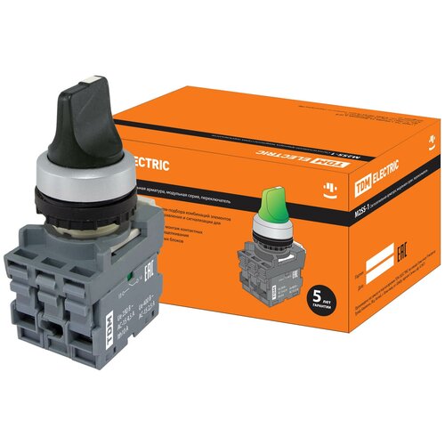Кнопки TDM Переключатель на 3 положения с фиксацией M3SS1-20B короткая ручка в сборе d22мм 1з+1р черный TDM SQ0747-0079