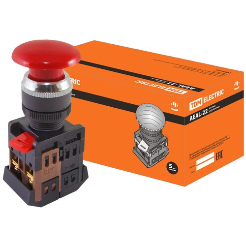 Кнопка AEAL-22 "Грибок"с фиксацией красный d22мм 230В 1з+1р, TDM SQ0704-0020 (10 шт.)