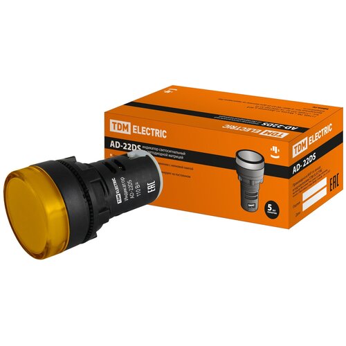 Лампа AL-22 сигнальная d22мм желтый неон/230В цилиндр TDM 10 шт