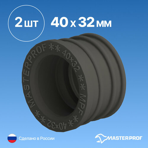 Манжета для канализации 40 х 32 мм, черная, уплотнительная сантехническая, 2 шт.