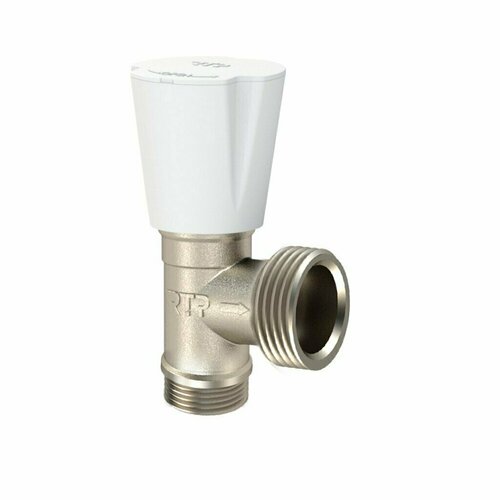 Кран для бытовых приборов, 1/2"х1/2", латунь, ручка, угловой, никель, РосТурПласт