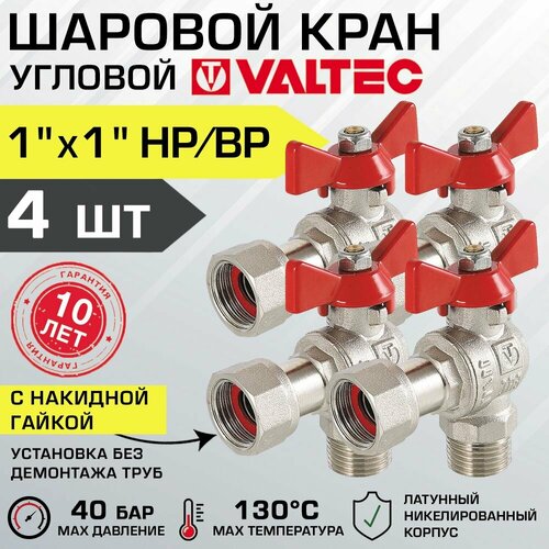 Кран шаровой 1" нар-вн (4 шт) VALTEC BASE угловой с накидной гайкой и ручкой-бабочкой, VT.267. N.0606