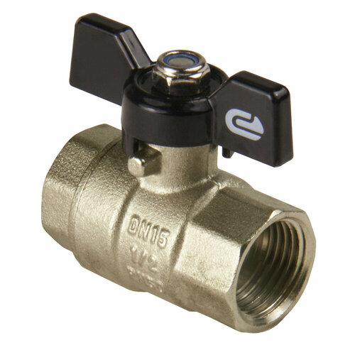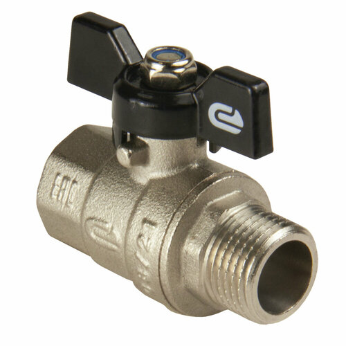 Кран шаровой латунный RTP с американкой (накидной гайкой) бабочка, вн/нар, PN 40, 1/2 дюйма
