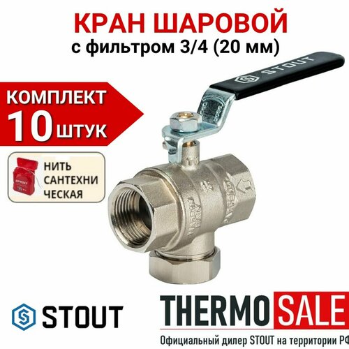 Кран шаровой полнопроходной, ВР/ВР, ручка рычаг 1" в комплекте 10 шт Сантехническая нить 20 м