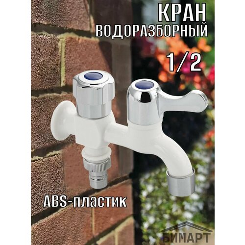 Кран водоразборный 1/2 из пластика АБС с двойным выходом