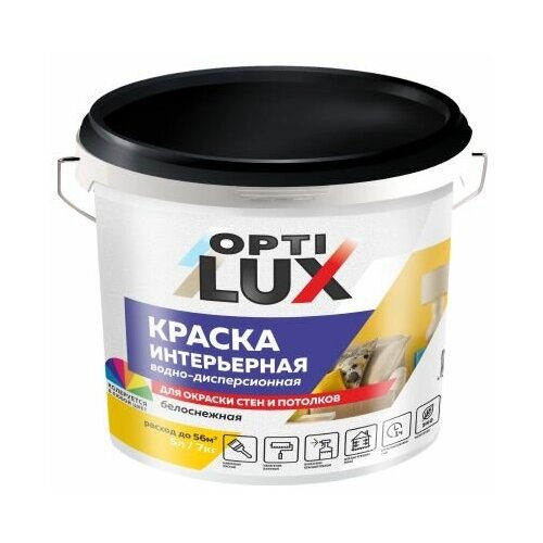Краска интерьерная Оптилюкс водно-дисперсионная, белоснежная 14 кг