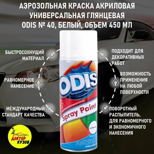Аэрозольная краска ODIS "Эмаль универсальная быстросохнущая в баллончике" Акриловая, Глянцевая, 0,45 л, № 40