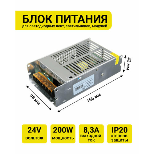 Блок питания для светодиодных лент и светильников PJ Neon 24V, 200W, 8,33A, IP20
