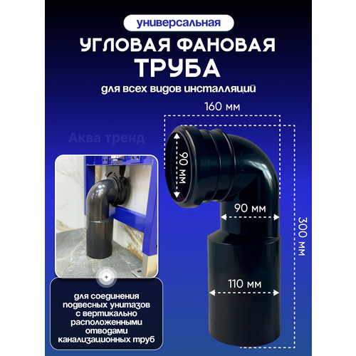 Патрубок для инсталляции, угловой, для унитаза, черный, 90мм x 110мм патрубок универсальный угловой 90 градусов