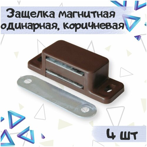 Защелка магнитная одинарная, мебельный магнит, цвет - коричневый, 4 шт.