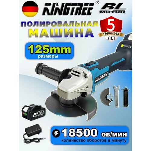 Болгарка KINGTREE, 125 мм, бесщеточный двигатель, 1 аккумулятора, Li-Ion, 5 Ач