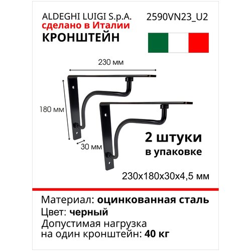 Кронштейн ALDEGHI LUIGI SpA 230х180х30 мм, оцинкованный, цвет: черный, 40 кг, 2 шт 2590VN23_U2
