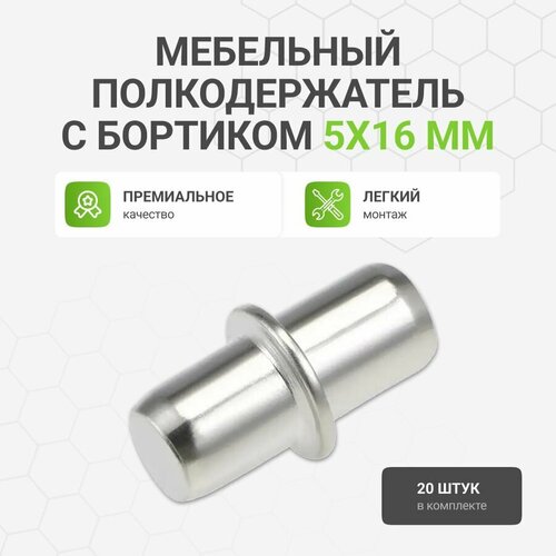 Мебельный полкодержатель с бортиком 5X16 мм, оцинкованный, 20 шт.