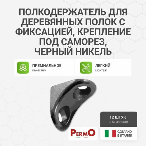 Полкодержатель для деревянных полок с фиксацией, крепление под саморез, никель, 12 шт