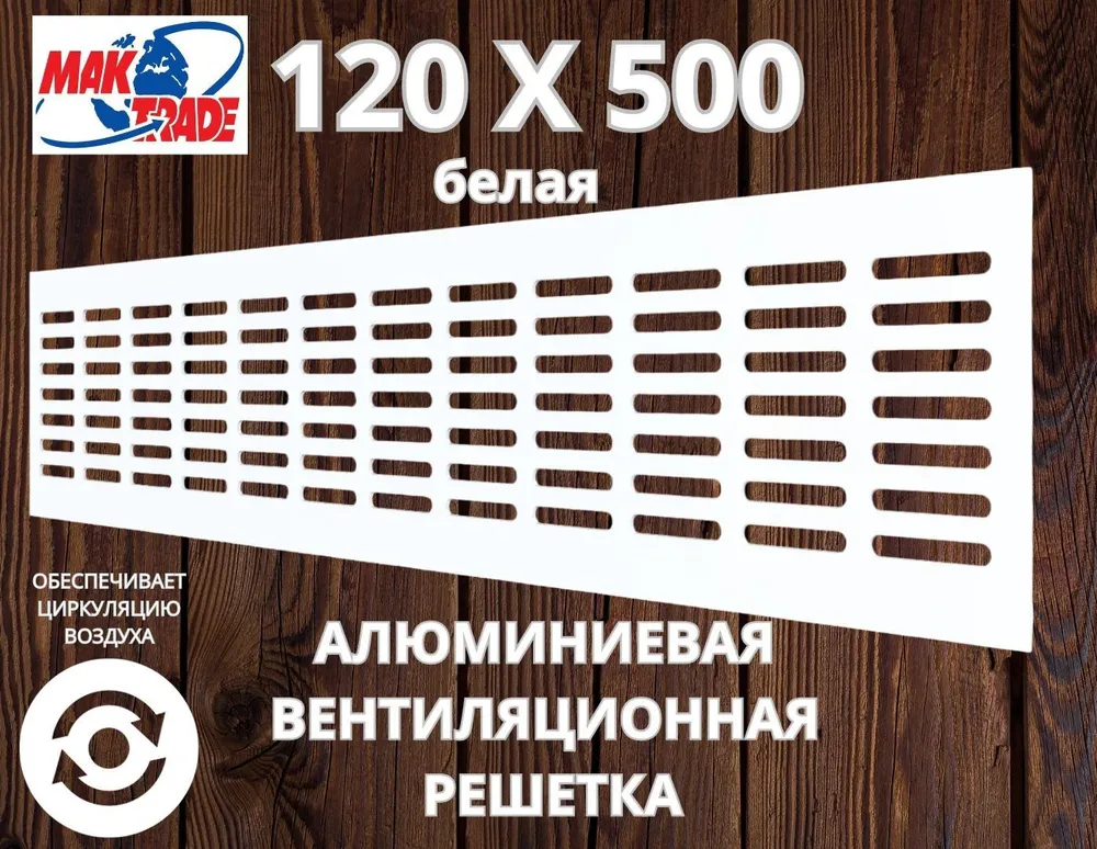 Bентиляционная решетка Mak Trade Group 120х500мм RM1250 White, алюминий, Сербия RM1250-White