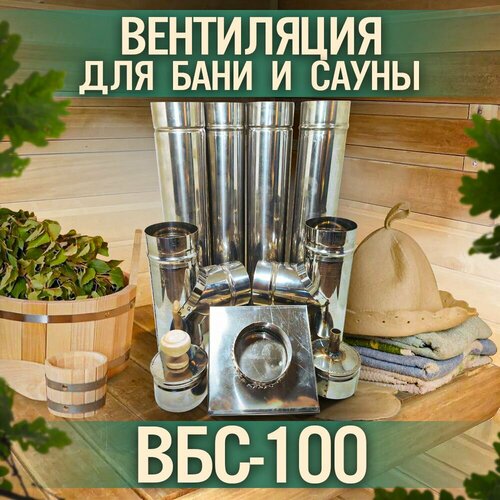 Вентиляция для бани и сауны Вентан ВБС-100 (Басту) , проход через стену, круглый воздуховод, диаметр 100 мм, нержавеющая сталь
