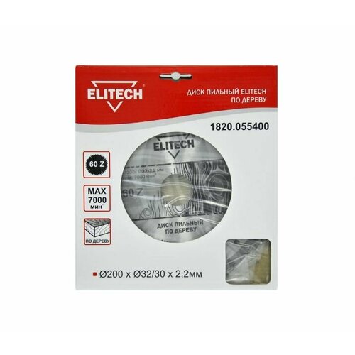 Диск пильный ELITECH 1820.055400 200мм х32/30 мм х2,2мм, 60 зуб, для дерева