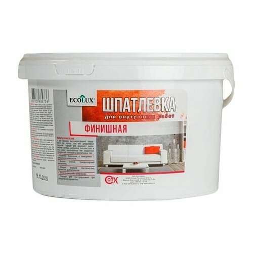 Шпатлевка Финишная акриловая для внутренних работ стен потолков заделки трещин, Ecolux 1.5кг