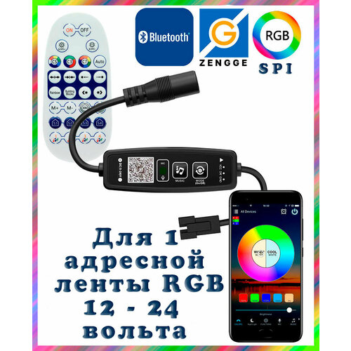 Умный Bluetooth контроллер RGB для адресных (SPI) светодиодных лент 12-24 вольт, управление радиопульт и смартфон,3pin