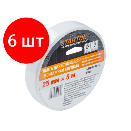 Комплект 6 штук, Лента двухсторонняя монтажная клейк. 25ммх5м STARTUL PROFI (ST9048-25-5)