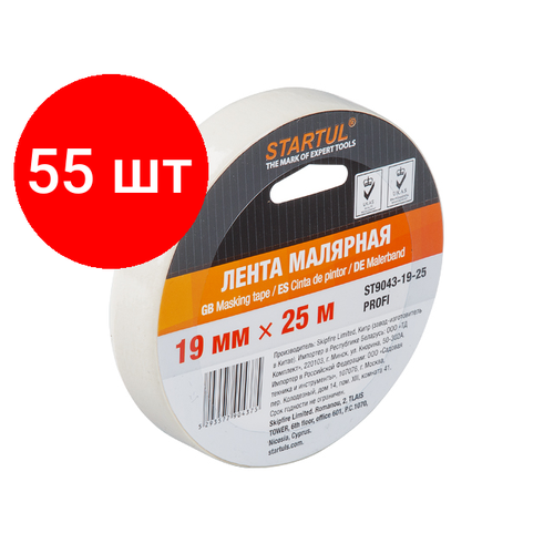 Комплект 55 штук, Лента малярная 19ммх25м STARTUL PROFI (ST9043-19-25), белая